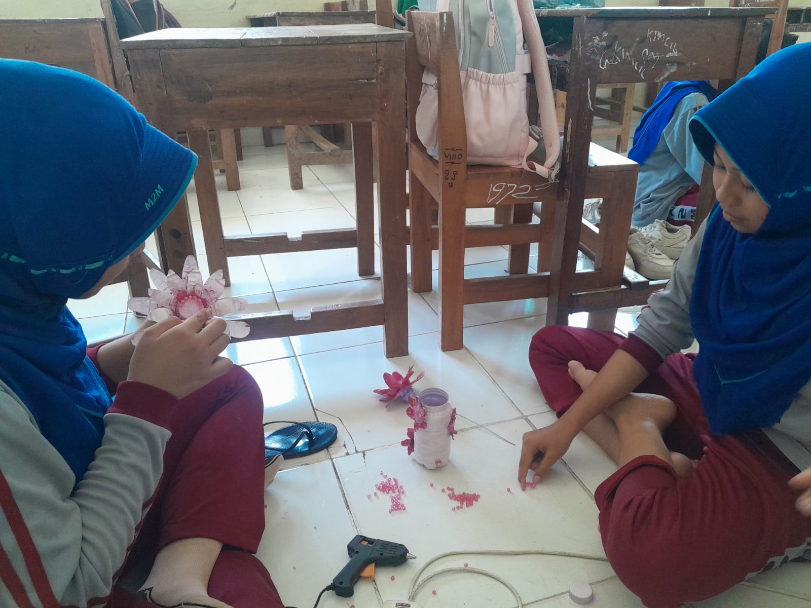 Adapun kelas IX menyalurkan kreativitas mereka melalui kegiatan membuat pot bunga dan menanam tanaman hias, yang kemudian ditempatkan di area taman madrasah untuk memperindah lingkungan sekolah.