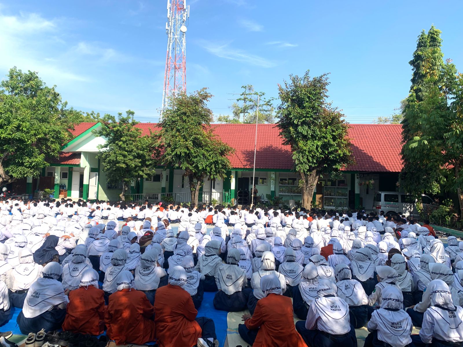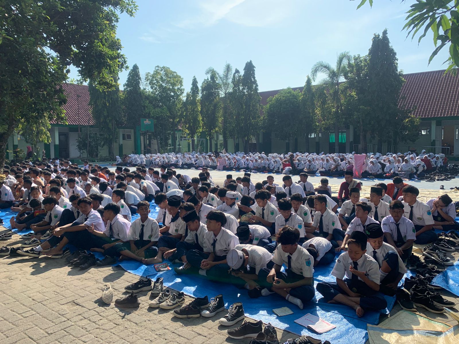 Magetan, 1 September 2025 — MTsN 2 Magetan melaksanakan kegiatan Sholat Dhuha berjamaah yang dilanjutkan dengan doa bersama (bermunajat) pada Senin, 1 September 2025. Kegiatan ini diikuti oleh seluruh guru, karyawan, dan peserta didik dengan penuh khusyuk di halaman madrasah.