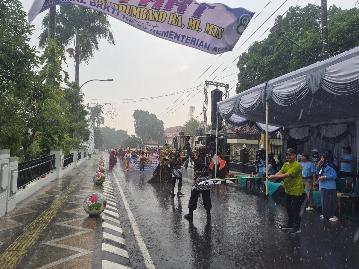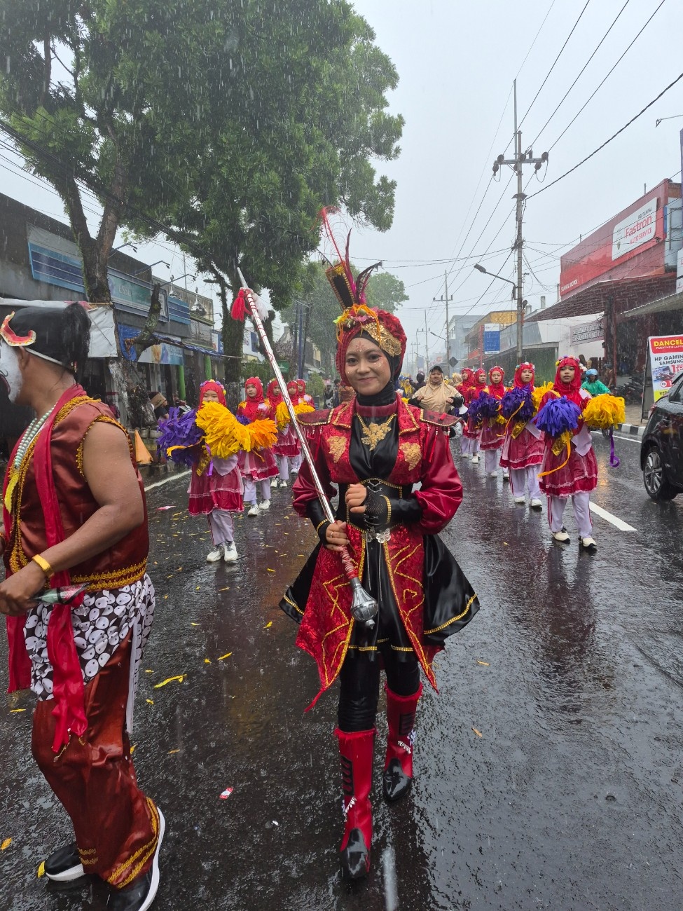 Meski cuaca kurang bersahabat dan hujan deras mengguyur selama kegiatan berlangsung, hal tersebut tidak menyurutkan semangat para peserta. Seluruh personel drumband tetap antusias dan menyelesaikan rangkaian parade hingga garis finis dengan penuh tanggung jawab dan kebanggaan.