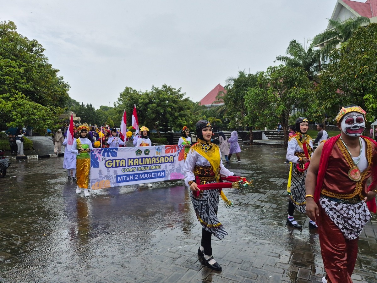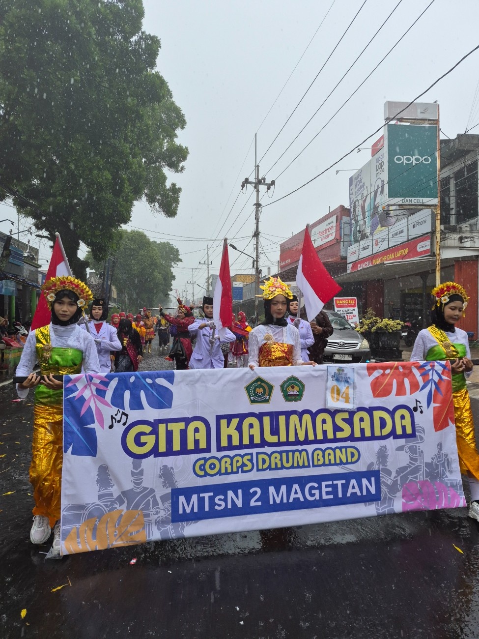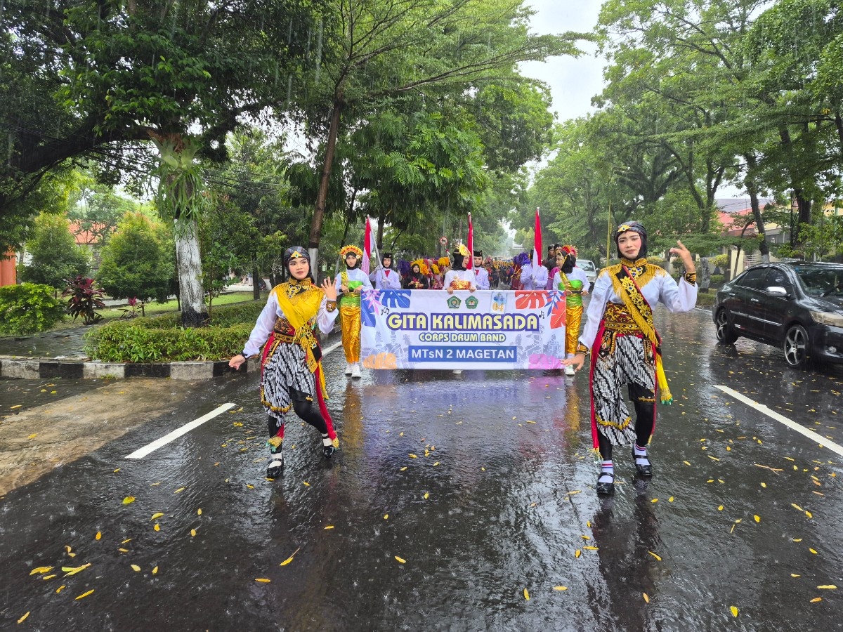 Parade drumband dimulai dari Alun-Alun Magetan dan berakhir di Gedung DPRD Kabupaten Magetan. Gita Kalimasada tim drumband MTsN 2 Magetan tampil penuh semangat dan kekompakan, menampilkan irama serta formasi yang menarik di sepanjang rute parade.