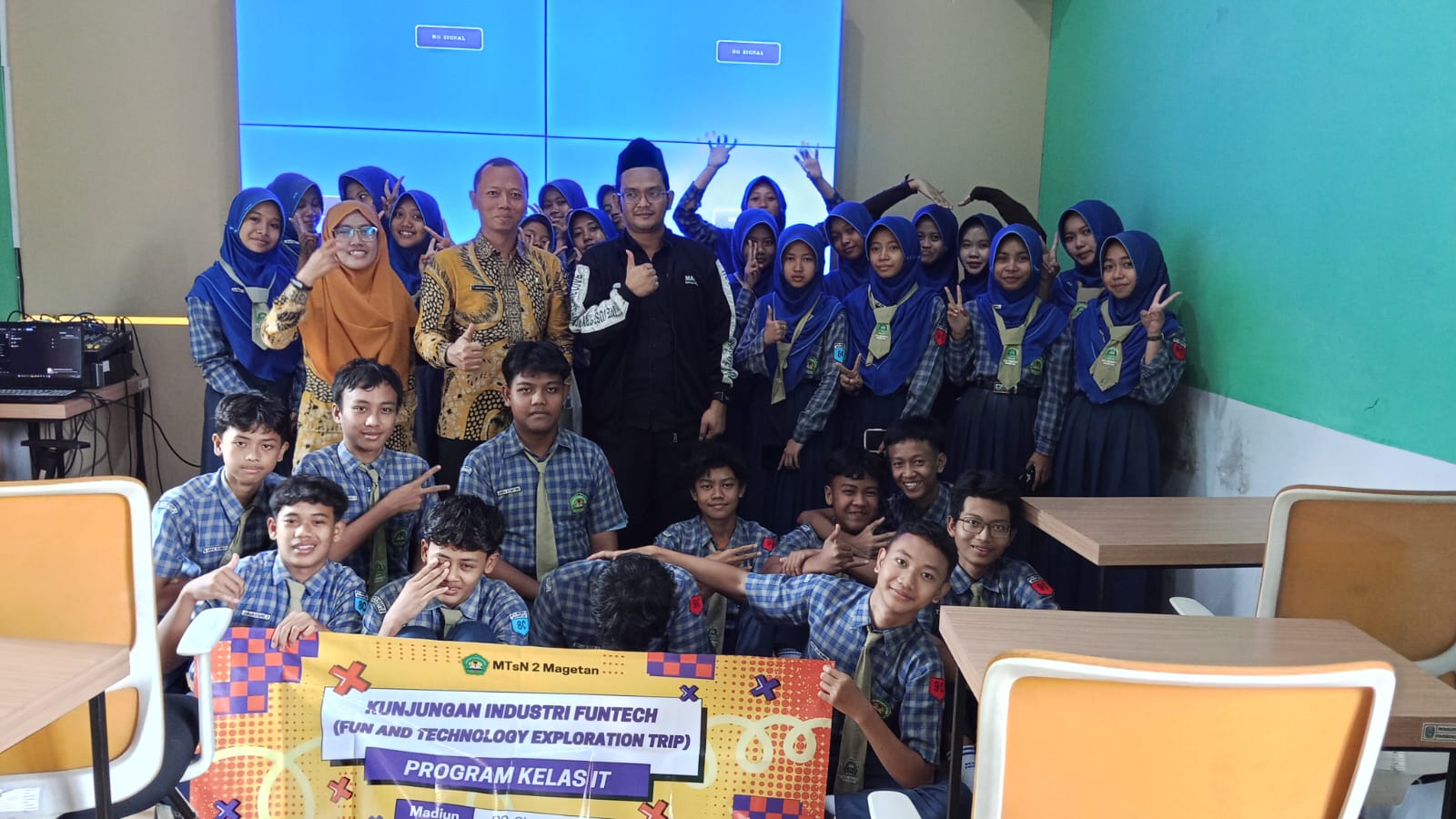 Magetan, 30 Oktober 2025 – Sebagai bagian dari kegiatan pembelajaran berbasis pengalaman, siswa kelas IT 9C MTsN 2 Magetan melaksanakan kunjungan edukatif bertajuk “FUNTECH 2025 (Fun and Technology Exploration Trip)” pada Kamis, 30 Oktober 2025. Kegiatan ini bertujuan untuk memberikan pengalaman langsung kepada siswa dalam dunia industri kreatif dan teknologi informasi, sekaligus memperluas wawasan mereka mengenai penerapan IT dalam kehidupan nyata.
