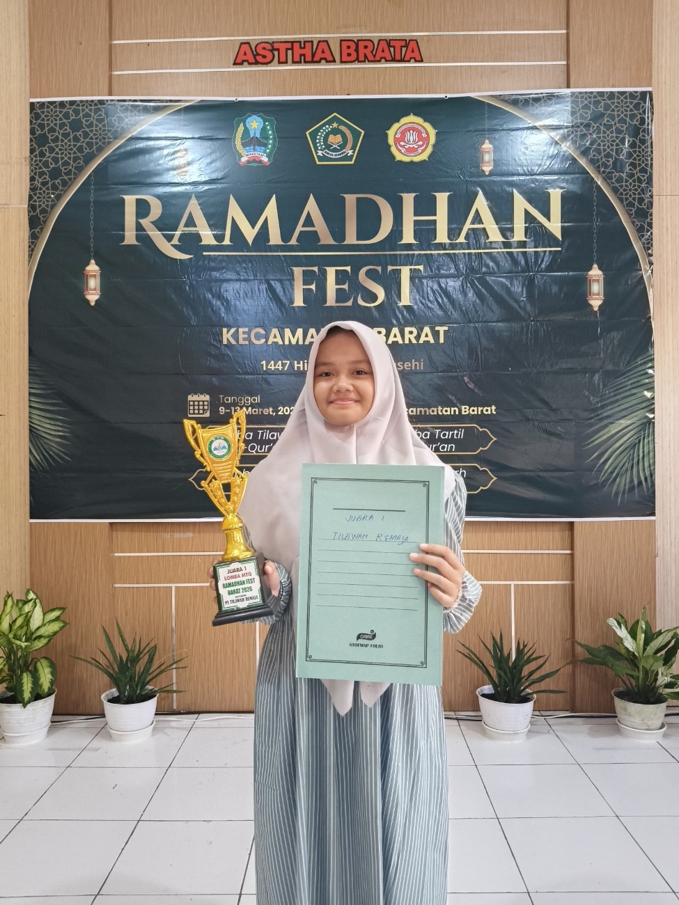 Dalam lomba tilawah kategori putri, Ayatul Husna, siswi kelas 8A, berhasil meraih Juara 1 setelah menampilkan bacaan Al-Qur’an yang merdu, tartil, dan penuh penghayatan. Penampilannya mendapatkan apresiasi dari para juri serta peserta yang hadir dalam kegiatan tersebut.